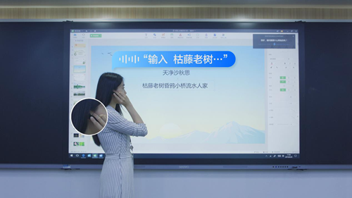 人的一言一行得到機器的反饋越快速,人機交互的效率便越高。當(dāng)內(nèi)容記錄不再只有粉筆、觸摸手寫,當(dāng)語音轉(zhuǎn)寫進(jìn)入課堂,老師在課堂上的移動自由便又再添一分。基于課堂教學(xué)對內(nèi)容生成的需要,小沃同學(xué)支持語音轉(zhuǎn)文字的功能,老師只需輕喚“輸入”,便能調(diào)取輸入框,并自動識別語音內(nèi)容轉(zhuǎn)換成文字呈現(xiàn)在師生面前。