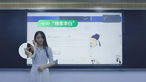 在過往的課堂里,當(dāng)講到教學(xué)設(shè)計之外的知識點延伸時,老師往往需要回到講臺,打開網(wǎng)頁,搜索對應(yīng)的知識點呈現(xiàn)給學(xué)生。這樣費時的操作常常打斷老師原有的課堂節(jié)奏。在課堂上,多數(shù)老師的理想狀態(tài)是心無旁騖地開展教學(xué)。小沃同學(xué)的語音搜索功能則為老師為此做出了巨大貢獻(xiàn),“搜索靜夜思的朗讀音頻”、“搜索‘正無窮’”、“搜索李白的人物簡介”……老師一聲令下,小沃同學(xué)便能快速聽取搜索指令并執(zhí)行,為全班師生答疑解惑。