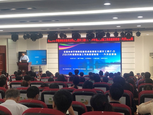 為落實《教育部關(guān)于實施全國中小學(xué)教師信息技術(shù)應(yīng)用能力提升工程2.0的意見》相關(guān)要求,全國中小學(xué)教師信息技術(shù)應(yīng)用能力提升工程2.0組織實施工作高級研修班現(xiàn)場于2019年9月26日下午兩點在長春汽車經(jīng)濟技術(shù)開發(fā)區(qū)第九中學(xué)舉行。本次活動是由教育部主辦,全國能力提升執(zhí)行辦公室、吉林省教育廳、吉林省教育學(xué)院承辦,長春汽車經(jīng)濟技術(shù)開發(fā)區(qū)教育局協(xié)辦,來自全國各省市的300余名教師參加了本次活動。長春市教育局副局長張茂金、崔國濤,長春市教育局師培處處長張希昌,汽開區(qū)管委會副主任丁文濤出席了會議。
