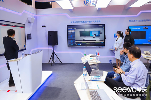 以科技賦能高等教育現(xiàn)代化建設(shè),希沃攜研討型教室、智慧教室、校園文化長廊等全新場景方案驚艷亮相,立即獲得各教育局領(lǐng)導、高校老師、渠道合作伙伴、權(quán)威媒體的廣泛關(guān)注。