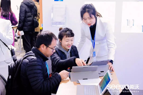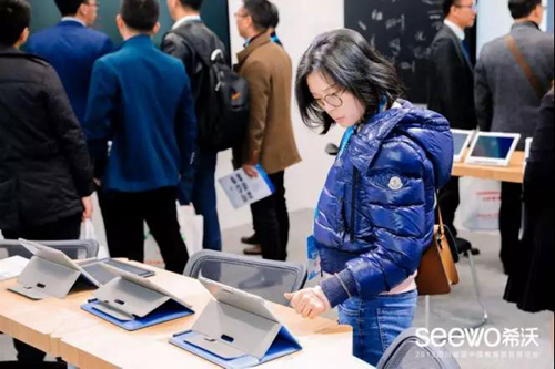 新品之外,希沃交互智能平板、希沃白板、班級(jí)優(yōu)化大師等經(jīng)典的交互顯示設(shè)備和應(yīng)用軟件也同樣成為本屆展會(huì)焦點(diǎn)。作為國(guó)內(nèi)交互智能平板的首創(chuàng)者,不少參會(huì)人士慕名而來現(xiàn)場(chǎng)體驗(yàn),而希沃也保持了一貫的開放,為有需要的參會(huì)企業(yè)提供交互顯示設(shè)備支持等服務(wù)。