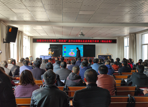 11月26日,在白銀區(qū)第二小學,白銀市全市中小學教師“班班通”教學應用暨信息素養(yǎng)提升培訓的最后一場管理員培訓結束了,白銀區(qū)120名骨干老師和管理員參與了培訓,他們認真聽,詳細記錄,為做好全校教師培訓做好準備。