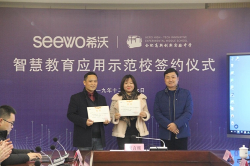 隨后,希沃合肥辦事處銷售總監(jiān)劉駿、合肥高新創(chuàng)新實(shí)驗(yàn)中學(xué)吳昌發(fā)副校長(zhǎng)共同簽署了希沃智慧教育應(yīng)用示范校合作協(xié)議。劉駿表示:“希沃有幸與合肥六中高新學(xué)校簽訂智慧教育應(yīng)用示范校合作協(xié)議,此次合作標(biāo)志著希沃將就信息技術(shù)與教育教學(xué)的融合應(yīng)用,與學(xué)校展開(kāi)更多領(lǐng)域的深度合作。我們將聯(lián)手加大對(duì)教師教學(xué)應(yīng)用的投入,以希沃學(xué)院為平臺(tái),通過(guò)信息化課程開(kāi)發(fā)、教研教學(xué)交流、智慧課堂打造等方式,共同促進(jìn)教與學(xué)的協(xié)同發(fā)展,促進(jìn)智慧教學(xué)在學(xué)校的落地使用。”