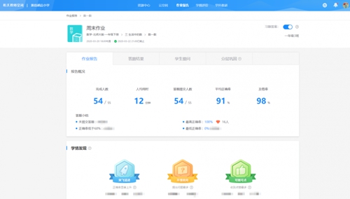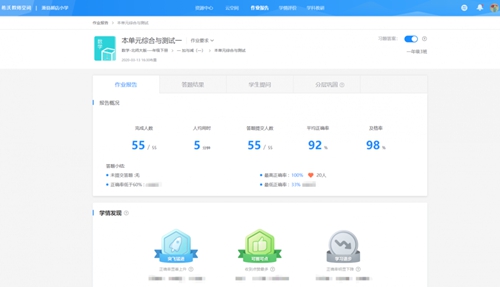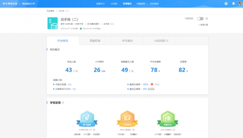 “我們班上有55個學生,在以往,每次手動批改作業,我都要耗費好多時間。”趙老師說:“可是這一次,使用希沃易課堂的‘自動批改’功能,批改作業的效率一下子就提高了,20分鐘就可以批改完畢。而且希沃易課堂自動生成的‘作業報告’,讓我更清楚掌握孩子們在家學習情況,我可以把更多時間花在如何幫助孩子們查漏補缺上。”