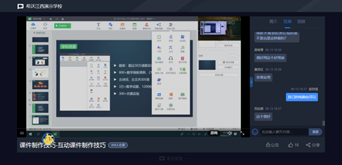 5月12日-5月14日為培訓的第一階段,自愿報名參加培訓的老師人數(shù)高達1000人。培訓內容根據(jù)當前開展線上教育情況和提升課堂教學質量兩方面實際進行了設計,授課教師圍繞交互式多媒體設備互動課件制作基礎、資源素材獲取、互動課件制作技巧、課件排版、班級管理及微課錄制六個板塊展開。