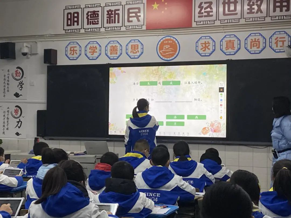 課前,涂老師利用希沃易課堂課前導學作業要求學生提前復習古詩詞并通過習題對復習結果進行檢測,大大提升了教學效率。課中環節,涂老師巧妙設計課件,利用希沃易課堂的游戲工具,讓語文古詩詞的復習變成好玩的競賽游戲,大大活躍了課堂氛圍,學生們也爭先搶答,參與游戲競賽。通過游戲化教學,讓學生一邊玩游戲,也一邊復習古詩詞,有效提升授課質量。下課時,涂老師還推送了課后作業到平板上要求學生自主完成。