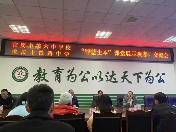 百年大計,教育為本。教育大計,教師為本。為了適應時代發展的需要,努力提高教師專業技能發展,引導課堂教學改革,借助信息技術智慧課堂幫助老師們轉變課堂觀念、改進教學方式,2021年1月7日,希沃陪同重慶市鐵路中學校由廖正蘭副校長帶隊的7名優秀領導及教師一起來到宜賓市第六中學校,共同參觀了校際展示課,并進行智慧課堂交流探討活動。