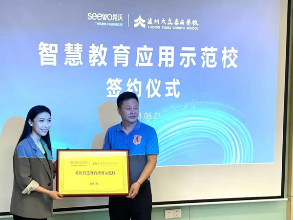 瀘州天立春雨學校楊兵校長同希沃學務事業部全國運營顧問馮智慧完成智慧教育應用示范校合作簽約。