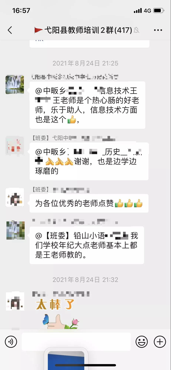本次培訓活動旨在為老師們搭建一個交流學習的平臺,讓老師們足不出戶就能享受優質教育資源培訓,共同探討信息化教學的方法和技巧。此次線上培訓活動以“線上直播課+線上研修班+實操大作業”的方式進行,邀請老師加入指定的學習群,通過線上學習平臺,完成弋陽縣此次的培訓學習。這是一場激起老師們學習氛圍的培訓,更是為開學初的復課做了一次沖刺準備。