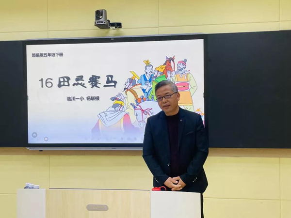在會(huì)議結(jié)束前,來自臨川區(qū)第一小學(xué)的楊連根老師還帶來了一節(jié)無生模擬展示課,課題的名稱是《田忌賽馬》。