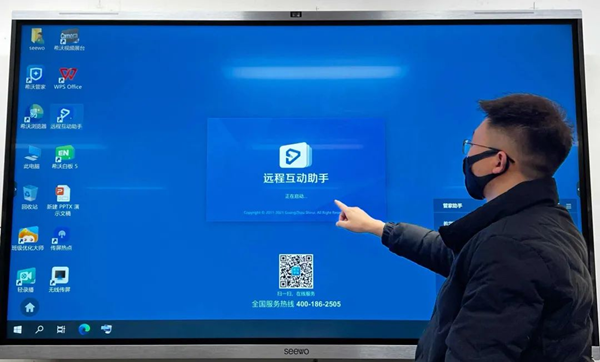 為了保障線上教學的質量與常態化,讓居家隔離的學生享受良好的聽課體驗,希沃利用教室原有的希沃交互智能平板的麥克風與攝像頭,搭建了輕量化的希沃遠程互助助手方案,并迅速組織教師培訓,幫助老師掌握線上開課的應用與操作方法。