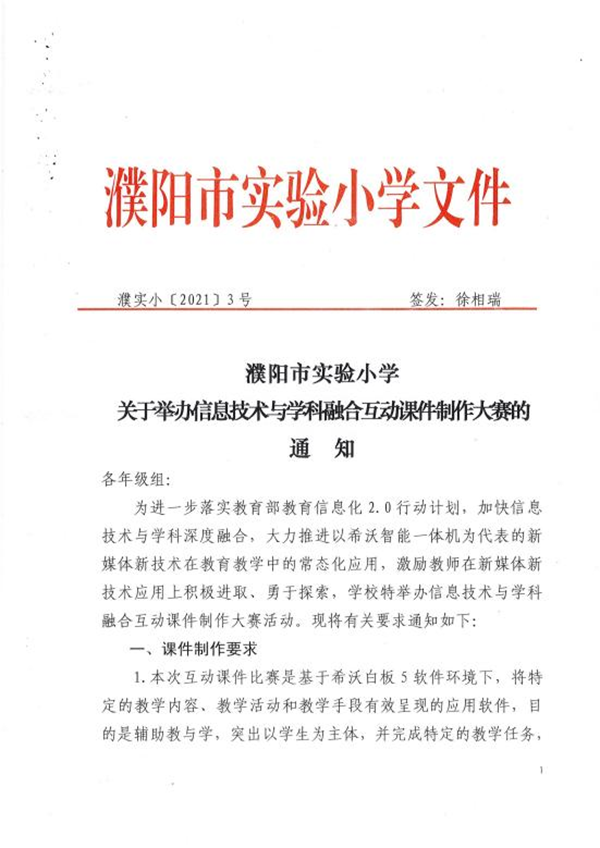 2019年學(xué)校成為河南省教師信息技術(shù)能力提升2.0項(xiàng)目試點(diǎn)校,學(xué)校結(jié)合基本發(fā)展實(shí)際,制定整校推進(jìn)研修模式,聯(lián)合希沃公司開展以希沃白板應(yīng)用為主的混合學(xué)習(xí)環(huán)境的應(yīng)用培訓(xùn),并每年舉辦希沃杯互動課件大賽和微課制作大賽活動。