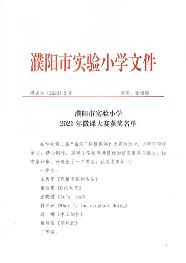 培訓(xùn)活動結(jié)束后,濮陽市實(shí)驗(yàn)小學(xué)揭曉了2021年度教育部基礎(chǔ)教育精品課評選,學(xué)校青年教師杜雨晴以其扎實(shí)的信息素養(yǎng)和良好的教學(xué)能力,作為濮陽市直學(xué)校唯一代表入圍了國家級評選并榮獲教育部精品課。