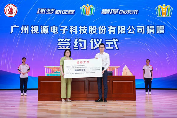 據悉,為進一步發揮優秀學生模范帶頭作用,樹立先進典范,視源股份與廣東工業大學共同設立“視源優秀學生獎學金”項目,以此鼓勵廣工學子精研專業、不斷創新,為粵港澳大灣區發展貢獻力量�;顒由希F箅p方代表簽訂捐贈協議,并進行支票頒贈儀式。