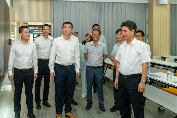 儀式結束后,學校黨委書記胡欽太、學校黨政辦公室主任植林、學校信息化辦公室主任韓韜、網絡信息與現代教育技術中心主任馮廣、課室管理中心主任陳浪城、課室管理中心副主任林烈青等領導來到智慧教室參觀指導,聽取工作小組成員匯報智慧教室的整體建設情況,對全新的智慧教學實驗室表示認可。