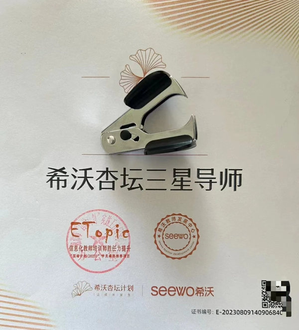 本次活動(dòng)來(lái)自6個(gè)市州的23位老師獲得了杏壇三星導(dǎo)師證書,湘潭市教育技術(shù)研究室主任何光虎、湘潭教育學(xué)院教師培訓(xùn)管理科負(fù)責(zé)人陳蕾、湘潭子敬學(xué)校信息化辦主任田書志分別給通過(guò)認(rèn)證的老師頒發(fā)三星導(dǎo)師證書和專屬勛章。