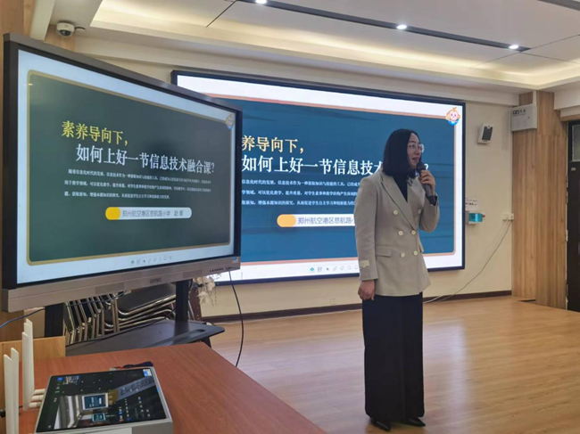 接著,鄭州航空港區(qū)慈航路小學(xué)的趙娜老師以《如何上好一節(jié)信息技術(shù)融合課》為主題,分享了她在教學(xué)實(shí)踐中的寶貴經(jīng)驗(yàn)和有效策略。她強(qiáng)調(diào)了信息技術(shù)與課程融合的關(guān)鍵在于找到二者的最佳結(jié)合點(diǎn),實(shí)現(xiàn)優(yōu)勢(shì)互補(bǔ),從而提高教學(xué)質(zhì)量和學(xué)生的學(xué)習(xí)效果。