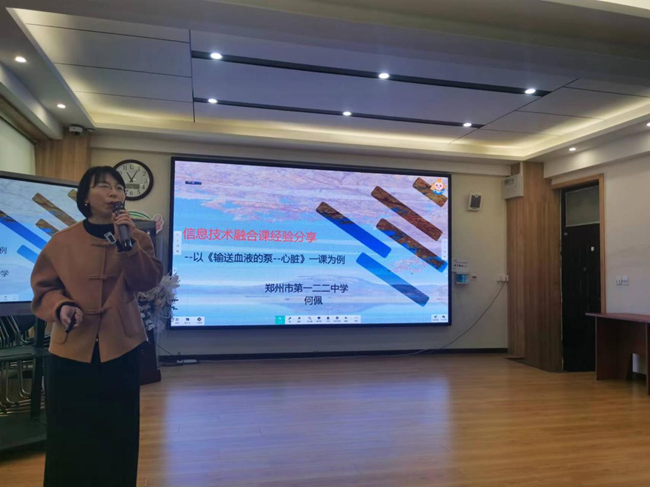 隨后,來自鄭州市第一二二中學(xué)的何佩老師以《輸送血液的泵——心臟》為課例,進(jìn)行了信息技術(shù)融合課經(jīng)驗(yàn)分享。她巧妙運(yùn)用信息技術(shù)手段,將抽象的知識(shí)變得直觀生動(dòng),將教學(xué)重難點(diǎn)融入互動(dòng)和學(xué)生的闡述中,讓學(xué)生在的觀察、實(shí)驗(yàn)、主動(dòng)思考中掌握知識(shí)要點(diǎn)。