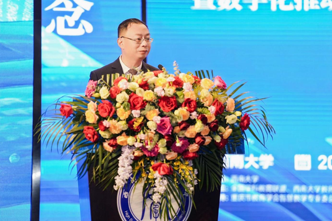 重慶市教委二級巡視員竇曉明代表市教委對此次年會的舉辦表示祝賀,并對推動數(shù)字化背景下大中小教學(xué)研一體化的深入發(fā)展提出三點(diǎn)期許:深化協(xié)同共建理念、構(gòu)建數(shù)字化教育新生態(tài);回應(yīng)數(shù)字技術(shù)挑戰(zhàn)、洞悉教育系統(tǒng)發(fā)展難題;立足教育強(qiáng)國目標(biāo)、提供教育教學(xué)革新方案。