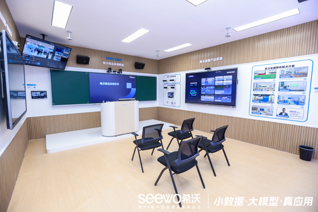 通過對人工智能技術的持續探究,希沃正在拓寬更多教育場景的應用。展會上,希沃工作人員向觀眾展示了全面升級的希沃錄播方案,通過AI技術賦能音視頻系統升級,進一步延伸數字化教學場景,滿足學校師生精品課錄制與應用、大型活動直播、遠程互動教學教研等多場景需求。
