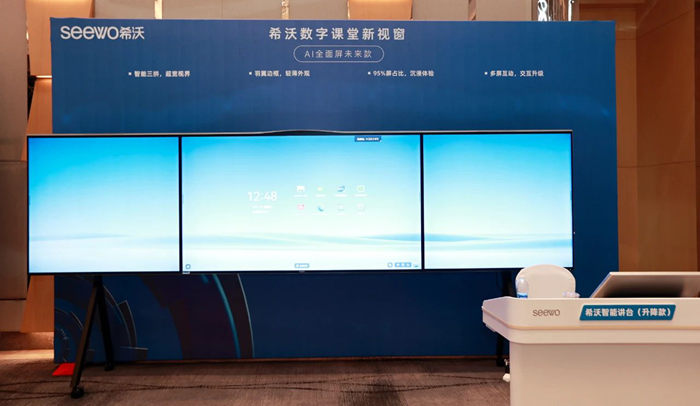 活動現場,希沃精心布置了展示區,重點展示了數字課堂新視窗·希沃AI全面屏和七代智慧黑板、希沃錄播全系列方案、希沃華騰系列方案。這些新品不僅繼承了希沃一貫的優質設計和卓越性能,更在功能和用戶體驗上進行了全面升級。參會人員紛紛駐足觀看,對新品表示出濃厚的興趣和高度的評價。