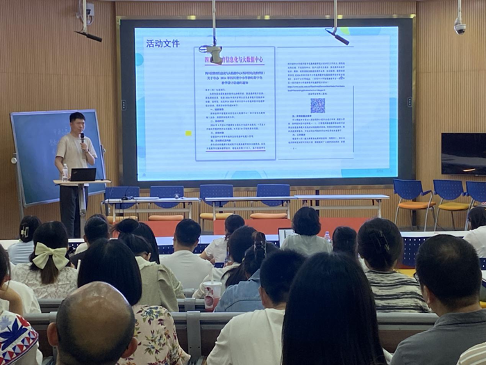 2024年5月,希沃受宜賓市第三中學(xué)邀請,圍繞本次教學(xué)設(shè)計活動開展了活動解析培訓(xùn)。本次培訓(xùn)由希沃教研顧問杜禹建老師主講,會上,杜老師深入解讀了活動指南,從人員范圍、時間安排、活動內(nèi)容及要求、活動流程、獎項設(shè)置及推薦程序等方面,為教師們提供了詳盡的指導(dǎo)。