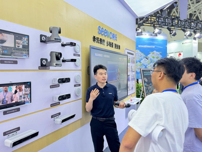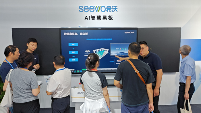 在本次展會上,希沃全新推出的智慧教室解決方案吸引了現場觀眾的駐足體驗。其中,全新希沃AI智慧黑板配備了行業內首創AI四目攝像頭*,搭載希沃自研教學大模型以及專屬的AI算力芯片,結合課堂智能反饋系統,從而實現對教室全景的覆蓋,以及更精準、更及時、更有效的課堂反饋。