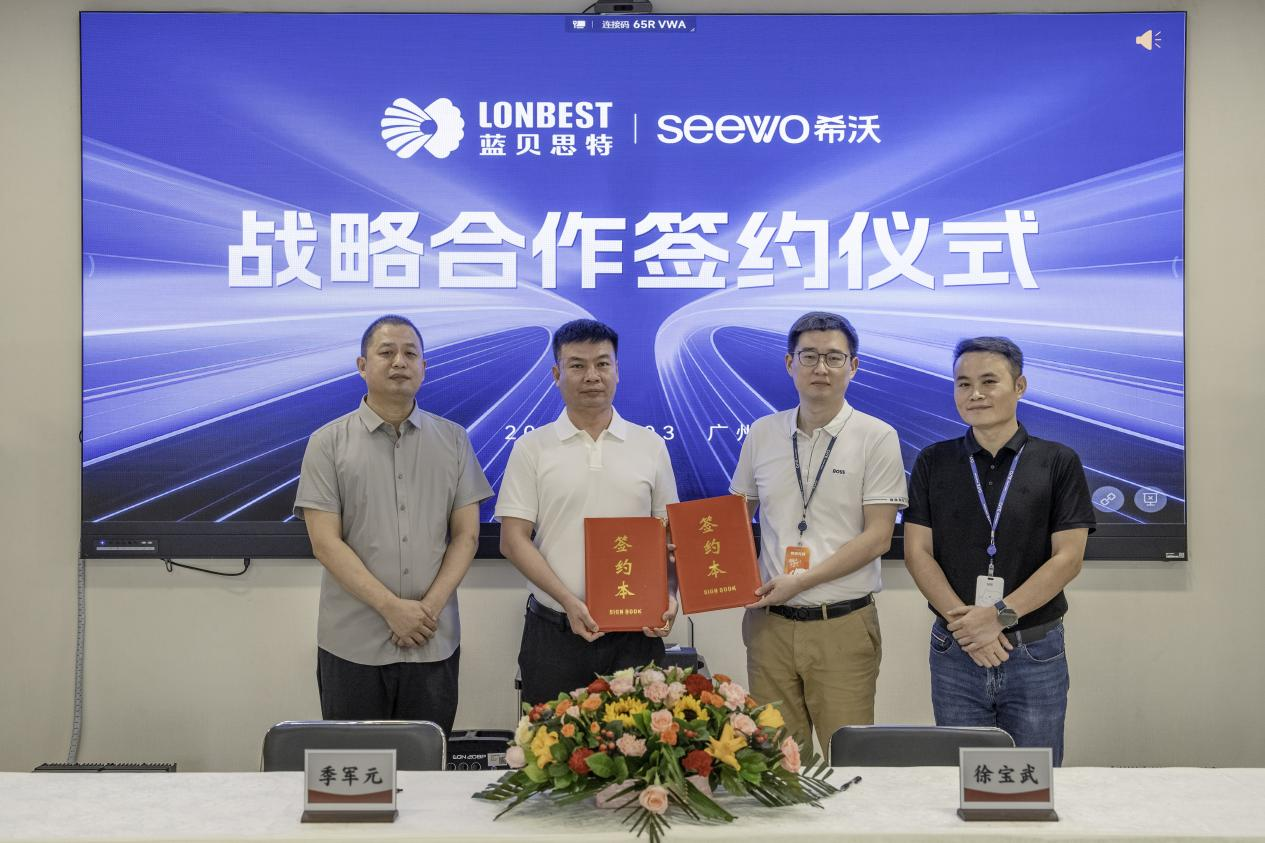 7月3日,廣州視睿電子科技有限公司(希沃)與山東藍貝思特教裝集團股份有限公司(下文簡稱“藍貝思特”)在希沃總部廣州舉行簽署戰略合作簽約儀式,雙方將整合核心技術,賦能教育高質量發展。藍貝思特董事長李清波、廣州視睿電子科技有限公司(希沃)總裁周海生等企業代表出席簽約儀式并見證。