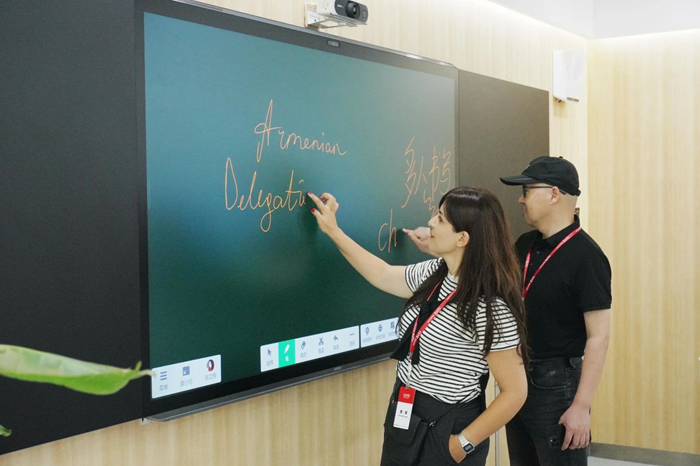 近日,來自南非、約旦、博茨瓦納、阿富汗、安提瓜和巴布達、巴基斯坦、尼日利亞、亞美尼亞、塞拉利昂的教育部官員走進視源股份蘇州產業園,不少官員現場體驗了希沃多款教育信息化產品,被中國的教育信息化設備深深吸引。此次研修班為蘇州科技大學受中華人民共和國商務部委托舉辦,旨在通過深入中國教育一線,了解中國在教育信息化領域的經驗和成果,促進國際間教育信息化交流與發展。