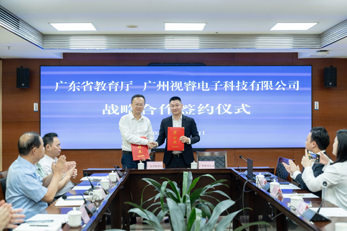 11月12日,廣東省教育廳與希沃簽訂戰(zhàn)略合作協(xié)議。廣東省委教育工委委員,省教育廳黨組成員、副廳長朱建華,廣東省教育廳基礎(chǔ)教育與信息化處處長趙琦,廣東省教育廳教育研究院副院長李海東,廣東省教育廳辦公室副主任張偉民,廣東省教育廳師資管理處三級調(diào)研員馬桂波,廣東省教育廳教育裝備中心三級調(diào)研員王穎,廣東省教育廳事務(wù)中心副主任李昶,廣州視睿電子科技有限公司(希沃)總裁張凌等出席簽約儀式。朱建華和張凌分別代表雙方簽約。