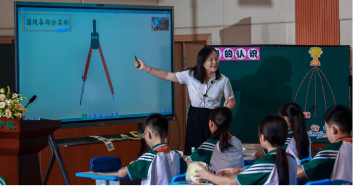 以平沙培英學(xué)校為例,小學(xué)數(shù)學(xué)教師林桂蓮老師展示的示范課《圓的認(rèn)識》充分體現(xiàn)了項目成果。該課程經(jīng)過3次人機(jī)協(xié)同備課磨課,希沃課堂智能反饋系統(tǒng)全程助力。首次課堂發(fā)現(xiàn)問題后,如課程時間過長、問題設(shè)計不合理等,在后續(xù)磨課中積極改進(jìn):調(diào)整教學(xué)模式,保持學(xué)生行為占比,優(yōu)化教學(xué)環(huán)節(jié),增加學(xué)生自主探究時間;改進(jìn)提問設(shè)計,減少數(shù)量并提高質(zhì)量,從初階向高階問題轉(zhuǎn)變。最終,課堂教學(xué)效果實現(xiàn)了質(zhì)的飛躍,課堂實錄顯示教學(xué)時間分配更合理,課堂練習(xí)時間增加,教師提問更加精煉,有效促進(jìn)了學(xué)生的學(xué)習(xí)和發(fā)展。