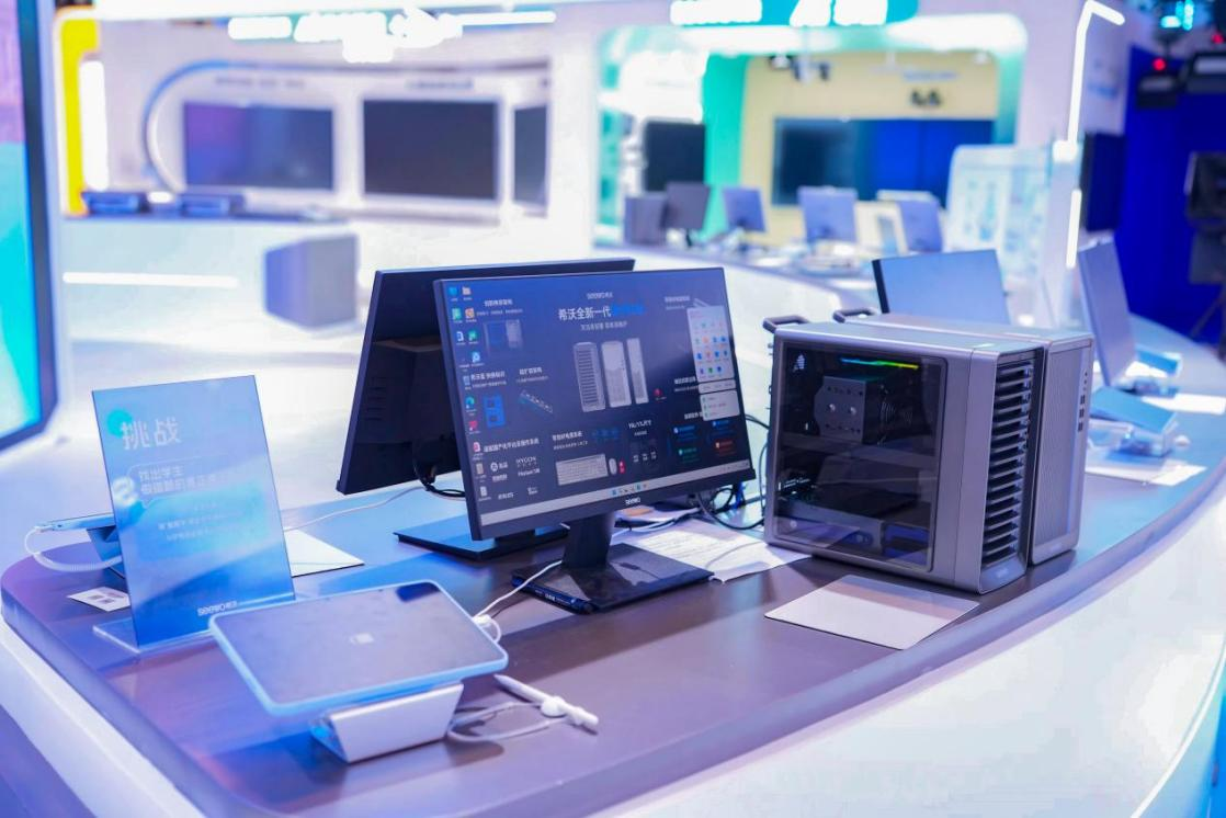 希沃帶來AI升級計算終端,打造出“更懂老師的電腦”。希沃首款榫卯架構的計算機終端是現場的看點。據悉,希沃自研“榫卯”的機箱架構,采用了獨特的榫卯架構,通過模塊化設計實現“免工具”維護,大幅降低設備維護成本。希沃商用計算機副總經理郭瀟介紹這款明星產品:“我們帶來的榫卯機器可不借助工具,徒手完成拆改。有藍色標識的地方都可以直接插拔的,這樣讓整個維護工作變得非常簡單。”