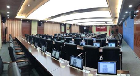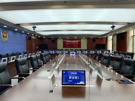 結(jié)合該甘肅省公安廳的實(shí)際情況,itc在甘肅省某公安廳的黨委會議室設(shè)置72個無紙化會議系統(tǒng),采用雙屏帶升降麥的方案,使得會議室整體效果美觀大方、操作簡單。該系統(tǒng)提供一個極為實(shí)用的會議系統(tǒng),大大解決了大量人力、物力等傳統(tǒng)問題,既能解決資源浪費(fèi),又能降低保密工作的壓力。