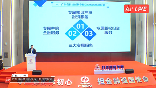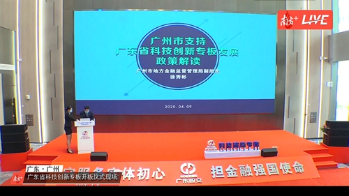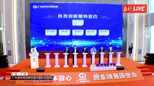 4月9日,“廣東省科技創(chuàng)新專板”開板儀式在廣東股權(quán)交易中心展示交易大廳舉辦,廣東省地方金融監(jiān)管理局、省科技廳、省市場監(jiān)管局、省發(fā)展改革委、廣東股權(quán)交易中心等領(lǐng)導(dǎo)及相關(guān)金融機(jī)構(gòu)、科技服務(wù)機(jī)構(gòu)、掛