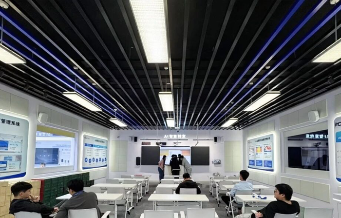 AI智慧教室展示區,以AI為核心,重點展示AI智慧云控教室系統、AI無感擴聲系統、AI智慧教育錄播系統、AI智慧教室健康照明系統、AI電子考場解決方案等前沿系統及方案,破解課堂教學痛點,為傳統課堂注入新活力,實現教學效率與質量雙提升。