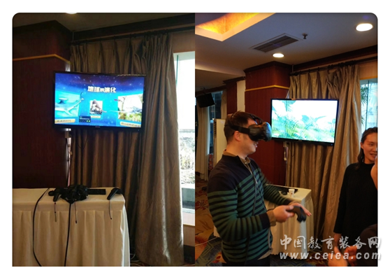 參會伙伴體驗VR教學系統,中教啟星致力于信息技術和教育的深度融合,為教師和學生提供更有趣更高效的教學體驗。