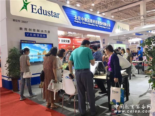 6月27日,為期三天的2018首屆內蒙古現代教育裝備技術展示會在內蒙古國際會展中心隆重開幕。中教啟星攜中學歷史學科整體解決方案、數字化地理專用教室整體解決方案、創客教育空間整體解決方案、數字星球系統、VR教學系統、交互教學系統等產品驚艷亮相,其中,由中教啟星獨家研發的VR教學系統吸引眾多參觀者駐足體驗,成為內蒙教備展上的耀眼明星。
