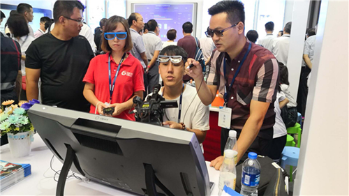 活動現場,陽泉市教育局局長來到太原市展區深度體驗了中教啟星VR教學系統,并詳細詢問了該系統的軟硬件特點和應用情況,對其一體化設計和沉浸式效果給與高度評價。