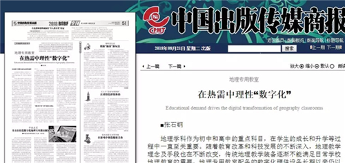 近日,《中國出版?zhèn)髅缴虉蟆こ砷L教育周報》第2455、2456期合刊刊發(fā)了一篇中教啟星關(guān)于地理專用教室的市場分析文章。文章認為,數(shù)字化專用教室的建設(shè),應(yīng)該在“數(shù)字化”和“專用”這兩個方面下功夫�!皵�(shù)字化”方面將大數(shù)據(jù)、AI,VR等新興技術(shù)與教育深度融合,緊跟技術(shù)潮流,讓技術(shù)為教育服務(wù);“專用”方面針對不同學科的教學特點,為學科教學研發(fā)軟硬件設(shè)備,不斷優(yōu)化教室的配置和功能。