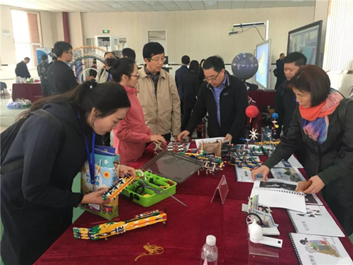 中教啟星展臺設(shè)在石家莊市青少年社會綜合實踐學校一樓的多功能廳,位于會場主出入口,占地面積達200余平,分為創(chuàng)客區(qū)、科技區(qū)、傳統(tǒng)文化區(qū)和虛擬現(xiàn)實展區(qū),是參展企業(yè)中規(guī)模最大、內(nèi)容最全、展品最多的。