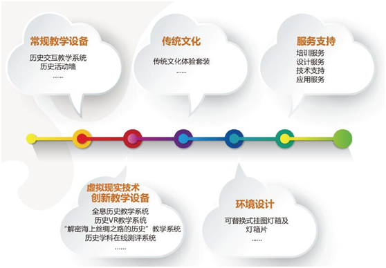 中教啟星中學歷史學科的方案設計集教學區、活動區以及讀書角等多功能區域為一體,支持學生室內交互、體驗活動的展開,能夠滿足歷史教學學科多樣化的教學需求。在富有多樣性、沉浸性的歷史教學空間中,學生能夠在教師的引領下,認識人類社會發展歷程,培養歷史學科核心素養,提高綜合實踐能力,增強對歷史的興趣,激發創造力。