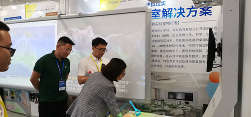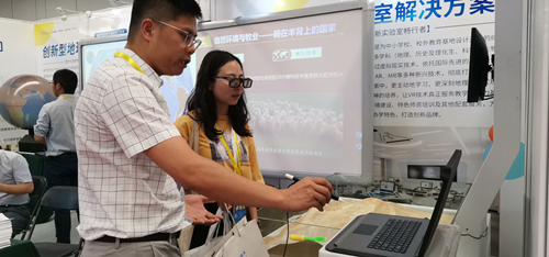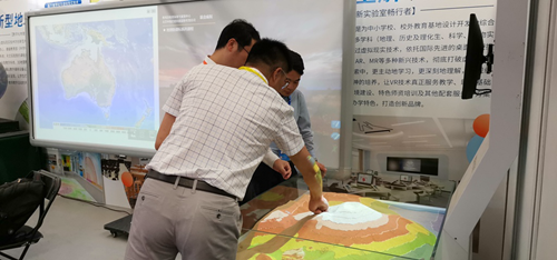北京中教啟星科技股份有限公司借浙江省地理、VR、數學、歷史等教室裝備指導意見出臺的東風,參加了此次展會,并展示了指導意見中幾乎全部核心設備,其中包括已經入編的中教啟星數字星球系統(多媒體球幕投影演示儀)、史地交互教學系統、地理AR沙盤、全息教學系統、VR教學系統、立體幾何模型等多種產品。