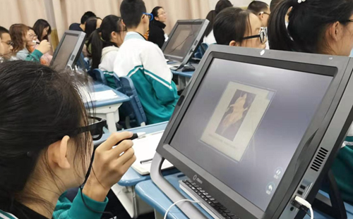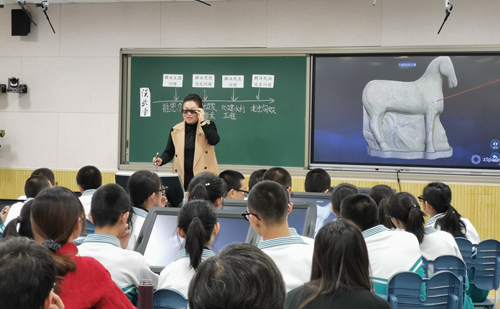 課堂中,鄔老師利用中教啟星文明的足跡歷史VR教學(xué)系統(tǒng)向同學(xué)們展示了文物“馬踏匈奴”,講述文物背后的故事,介紹紋飾的含義。此外,談到漢武帝時期極具影響力的事件——開發(fā)絲綢之路的時候,鄔老師通過系統(tǒng)中立體的地圖和線路演示,讓同學(xué)們了解到絲綢之路開發(fā)的長度和難度,同時引古喻今,引導(dǎo)學(xué)生思考21世紀絲綢之路的現(xiàn)實意義。