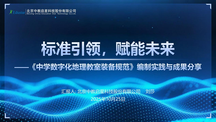作為《中學(xué)數(shù)字化地理教室裝備規(guī)范》團(tuán)體標(biāo)準(zhǔn)的牽頭編制單位,中教啟星方案策劃部經(jīng)理劉莎受邀出席并作主題匯報,分享了標(biāo)準(zhǔn)的創(chuàng)新編制理念與落地實踐成果,獲得了與會專家與同仁的高度認(rèn)可。
