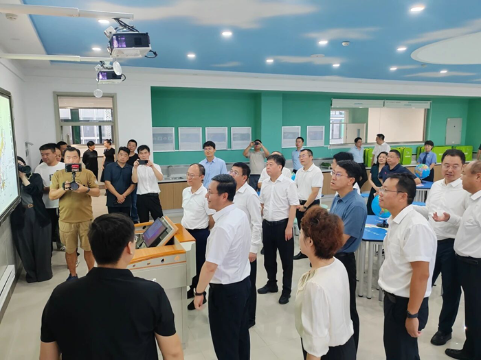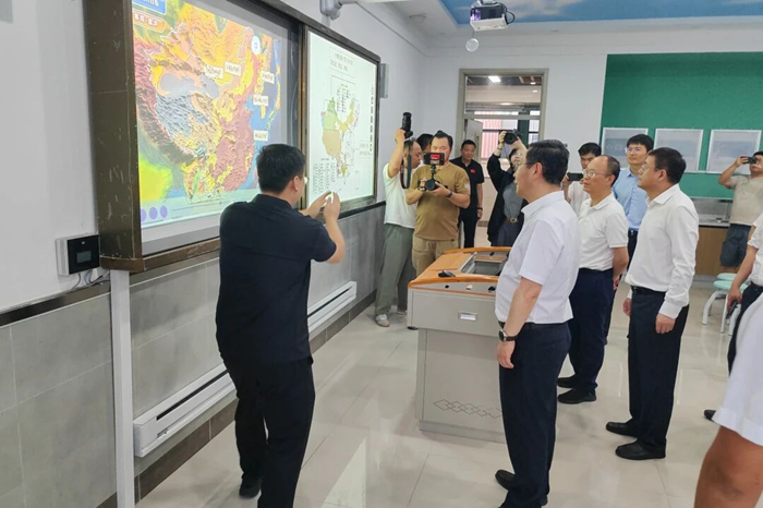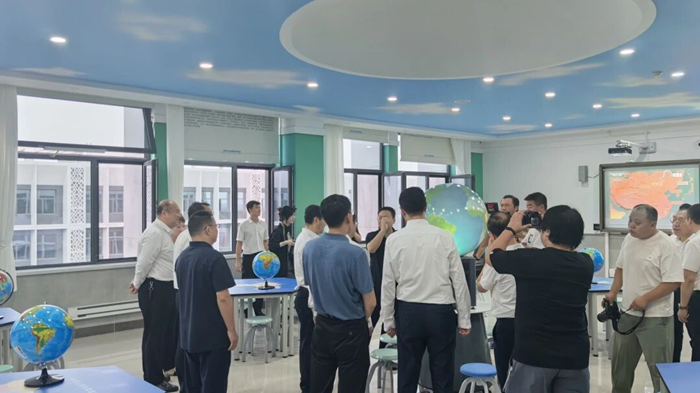 渾南區委書記、教育局長一行近日走進東北育才渾南科技城學校,開展秋季開學工作調研。東北育才渾南科技城學校的落成是渾南區教育資源擴容升級的重要里程碑,為學生提供貫通式一體化教育路徑,全面營造“科創賦能育才”的成長環境。此次調研不僅聚焦校園建設與開學籌備,更重點考察了由無錫羿飛教育科技有限公司承建的數字化地理歷史教室。領導一行深入課堂、親身體驗創新教學場景,對“科技+教育”的深度融合實踐給予高度評價,為智慧教育發展按下“加速鍵”。