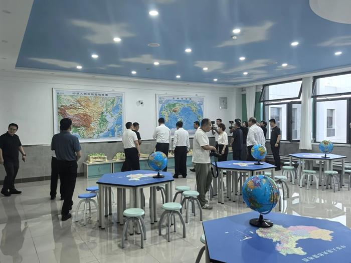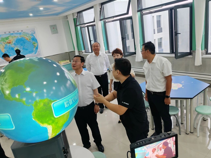在羿飛教育相關負責人陪同下,渾南區領導走進數字化地理歷史教室,現場觀摩了羿飛教育打造的創新教學裝備。羿飛教育數字化地理與歷史教室,以科技激活學科魅力。地理教室中,數字星球動態演示地球運動,AR 沙盤將沙堆實時轉化為虛擬地貌,球幕投影讓學生沉浸式觀察自然現象;歷史教室則通過數字模型 “捧起” 3D 文物,歷史沿革則讓學生通過時間軸+動態場景還原文明軌跡。雙教室均以 “互動 + 實踐” 打破傳統,讓地理規律與歷史故事從文字變為可觸可探的鮮活體驗。