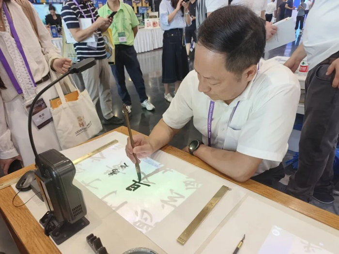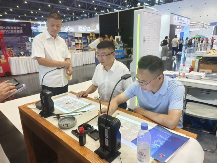 開幕當天,羿飛教育展位便成為展會焦點,現場人頭攢動,咨詢、體驗的參會者絡繹不絕 —— 既有來自全國各地的學校校長、學科教師,也有海外教育機構代表與行業合作伙伴。不少參會者在親身體驗產品后表示,羿飛教育的設備 “精準踩中了教學需求痛點”,尤其是數字臨摹學習臺,既保留了學科教學的專業性,又通過科技手段提升了課堂互動性,在 教學領域具有極高的應用價值。