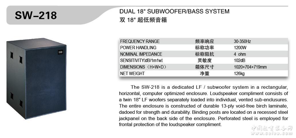 產品詳細介紹頻率響應30-350HZ,標稱功率1200W,標稱阻抗4OHM,靈敏度102DB,箱體尺寸1020*704*719,凈重126KG