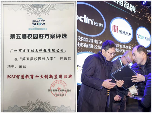 2018“校園好方案”優秀案例,吉星信息科技被評為2018智慧教育十大創新應用品牌!