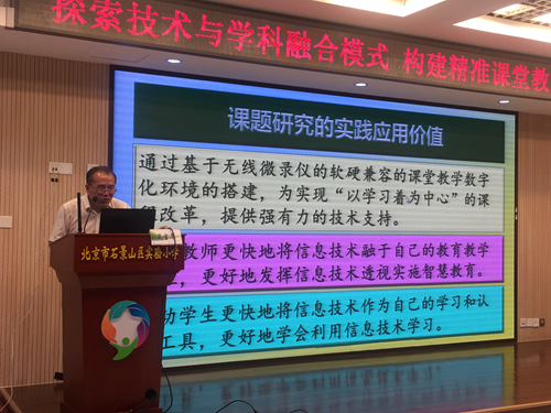 5月31日“探索技術(shù)與學(xué)科融合模式,構(gòu)建精準(zhǔn)課堂教學(xué)新常態(tài)”信息化成果研討會(huì)在北京石景山區(qū)實(shí)驗(yàn)小學(xué)舉行,教育信息技術(shù)領(lǐng)域?qū)<摇⑹吧絽^(qū)教委、石景山分院領(lǐng)導(dǎo)、課題組代表及一線骨干教師蒞臨會(huì)議現(xiàn)場,共同見證智慧校園建設(shè)及現(xiàn)代信息技術(shù)手段下開展的新課程改革發(fā)展成果,吉星作為課題《基于無線微錄儀的課堂教學(xué)創(chuàng)新應(yīng)用研究》的主辦方,參加本次活動(dòng)并作課題組經(jīng)驗(yàn)分享。